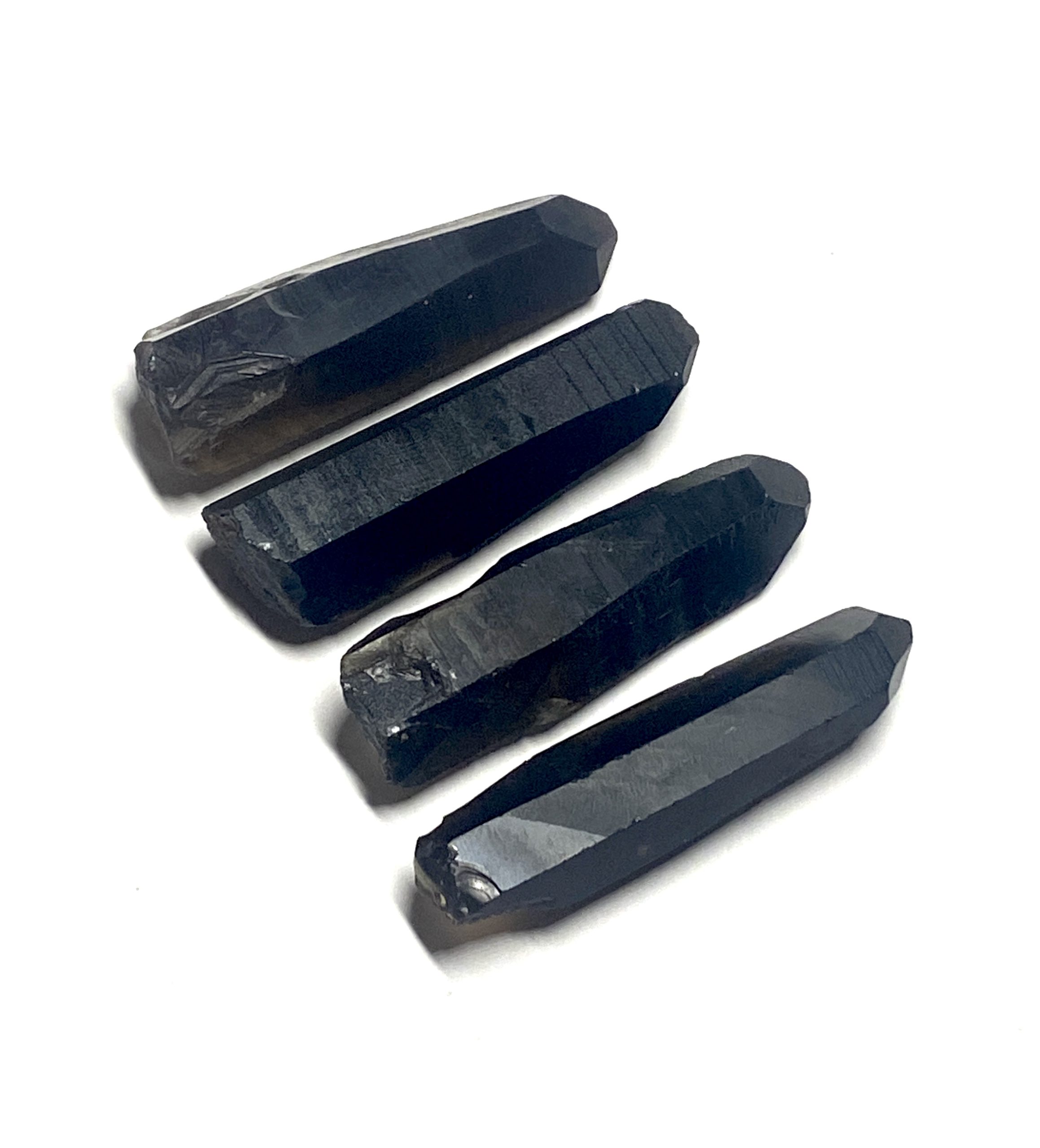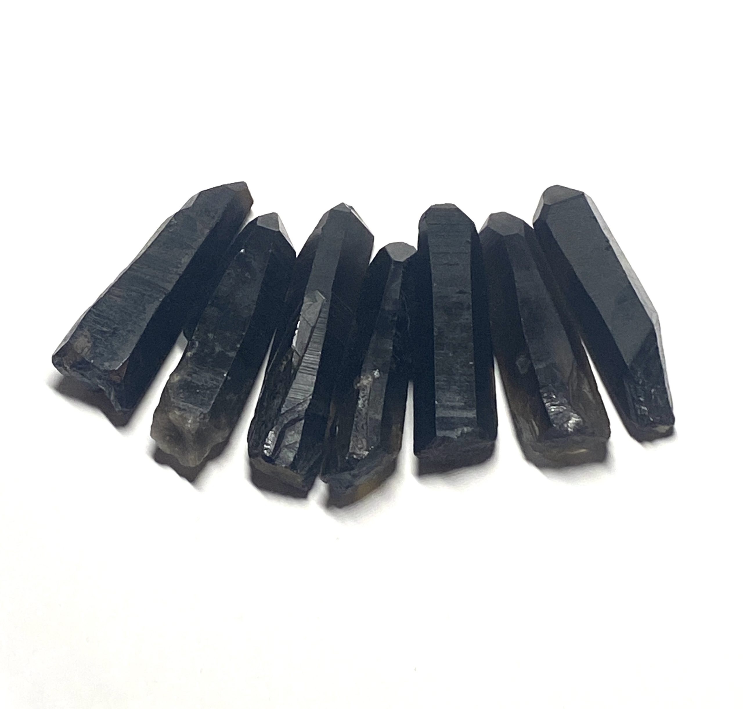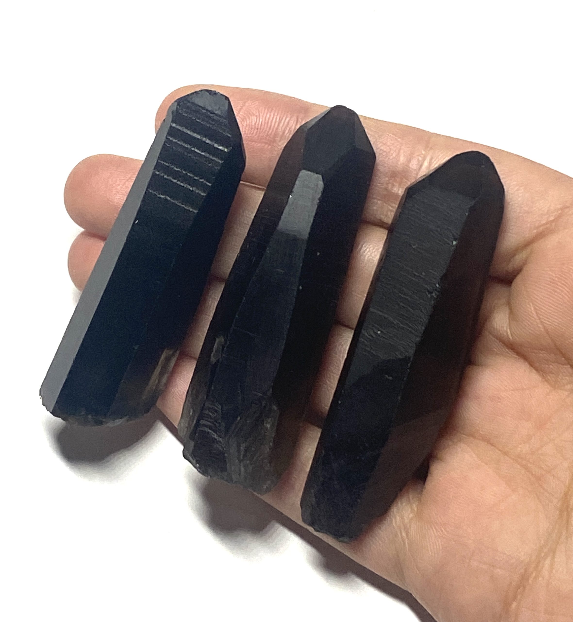 Earth-mined black quartz points from Afghanistan with natural terminations and smooth, naturally polished faces. Each piece is one of a kind.