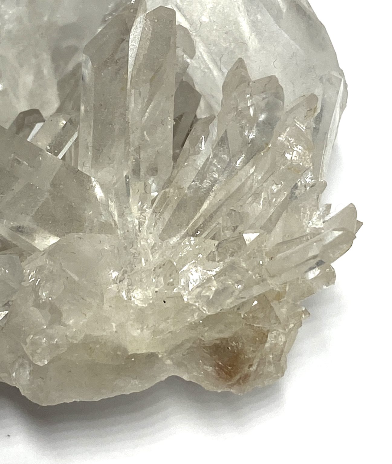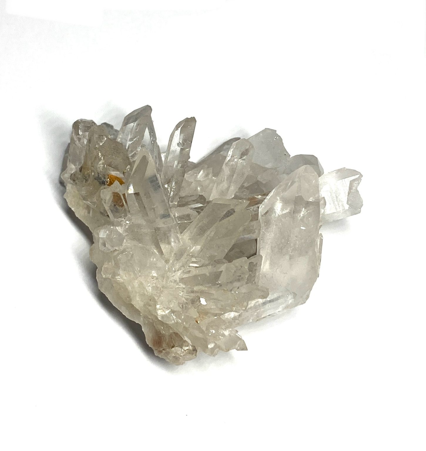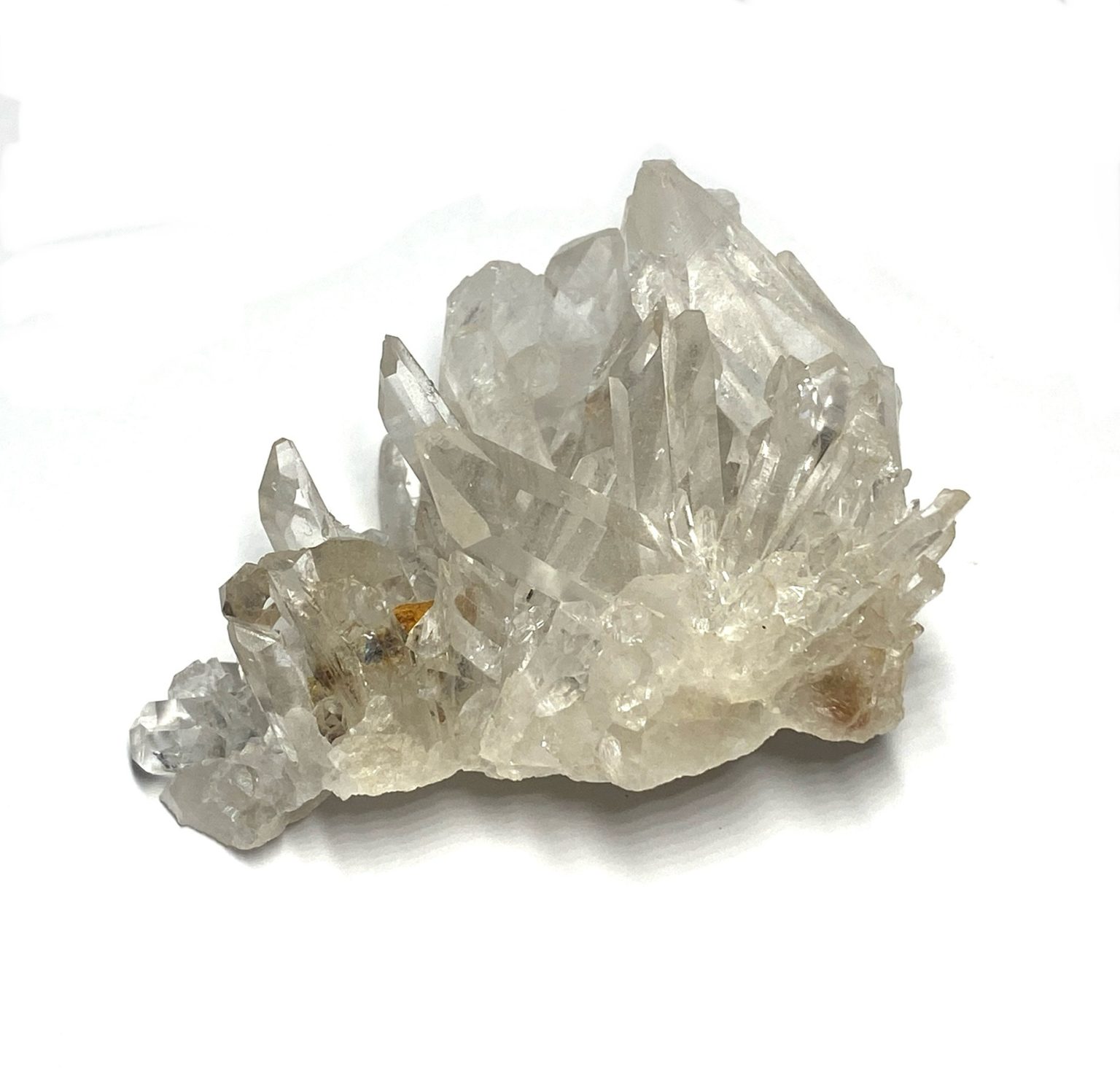 Viewed from different angles, the quartz points catch and scatter light, revealing subtle inclusions and natural textures that add depth and character. Its unique formation makes it an eye-catching piece for display, whether placed in a mineral collection or as a natural decorative accent. Elegant and dynamic, this Clear Quartz spray cluster showcases the timeless beauty and complexity of quartz crystal growth.