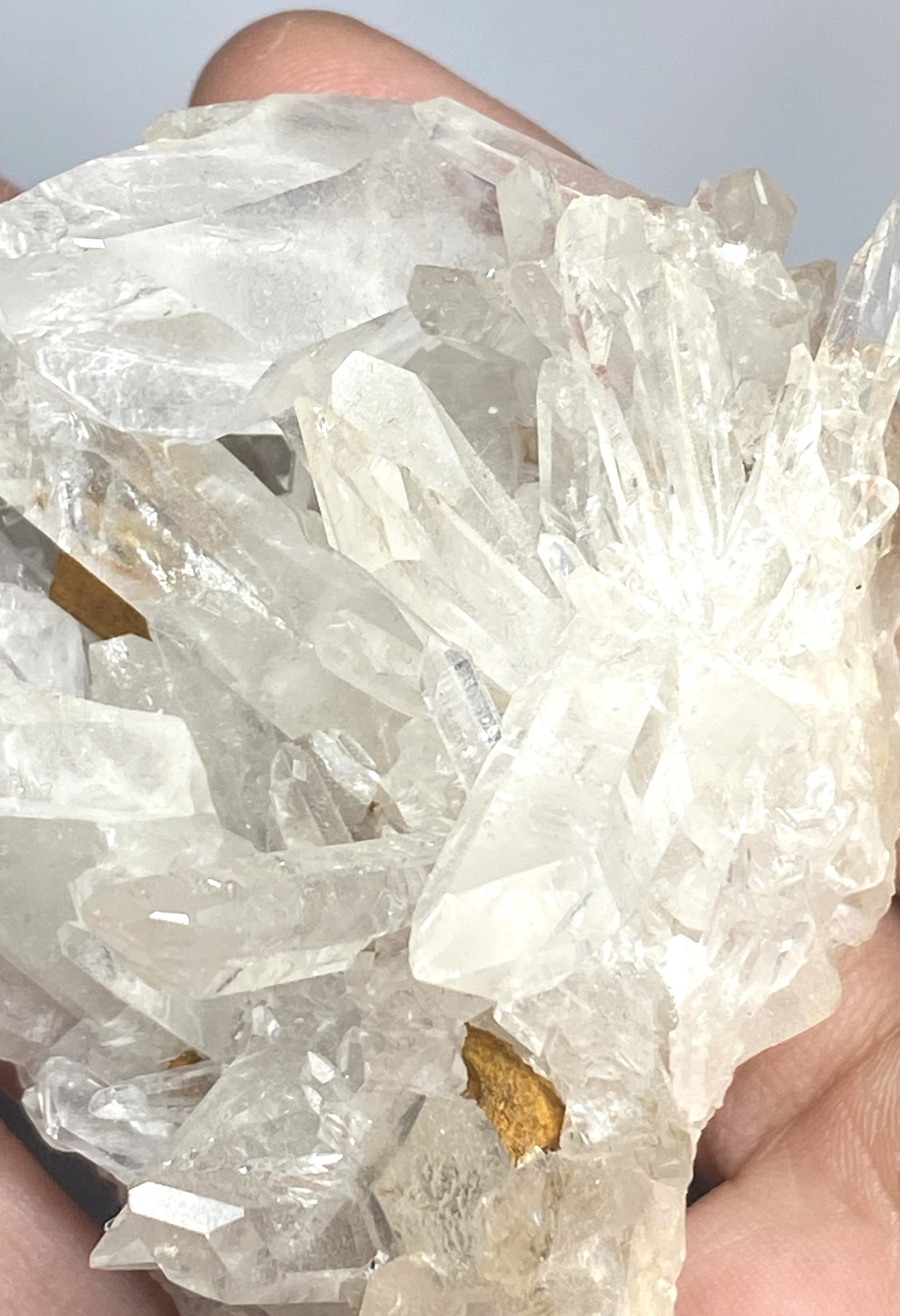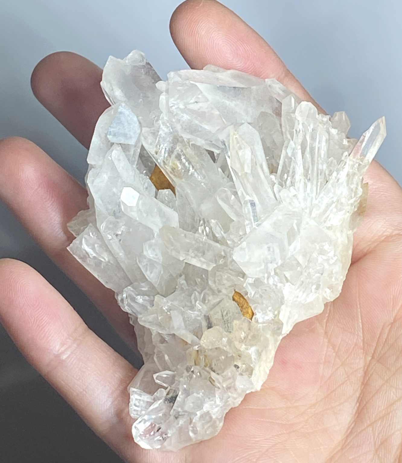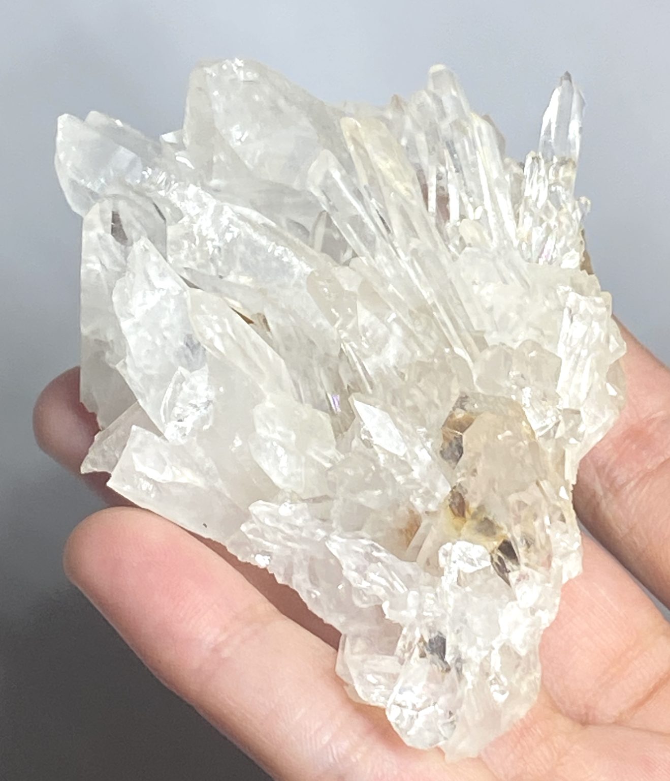Viewed from different angles, the quartz points catch and scatter light, revealing subtle inclusions and natural textures that add depth and character. Its unique formation makes it an eye-catching piece for display, whether placed in a mineral collection or as a natural decorative accent. Elegant and dynamic, this Clear Quartz spray cluster showcases the timeless beauty and complexity of quartz crystal growth.