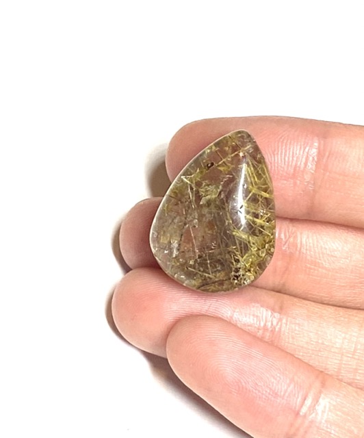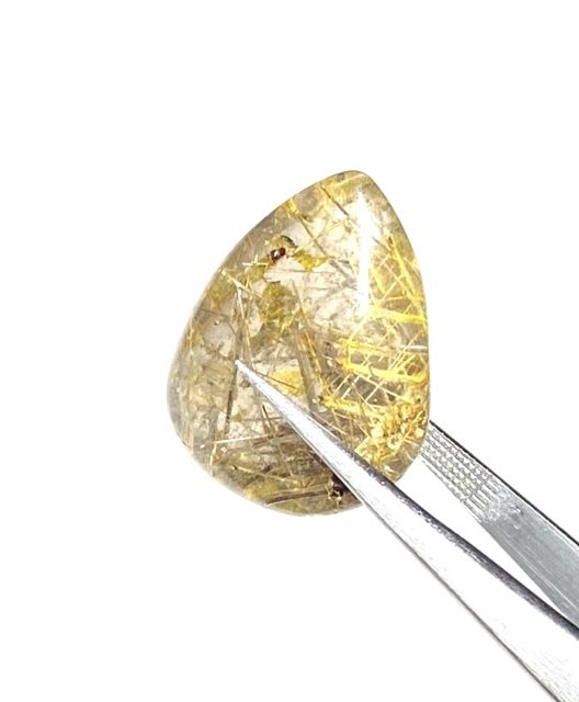 This Golden Rutile Quartz crystal showcases natural golden needle-like inclusions suspended within clear quartz. The delicate rutile strands catch the light, creating a subtle interplay of shimmer and depth that resembles sunlight filtering through. This handcrafted teardrop shape crystal retains its natural structure and internal formations, giving it a dynamic and visually captivating appearance. The combination of transparent quartz and metallic golden inclusions makes this piece unique. It features variations in density, length, and orientation of the rutile needles. These crystals are ideal for collectors, display, or as inspiration for jewellery design. Their striking internal patterns and polished clarity highlight the natural beauty and complexity of this prized mineral specimen.