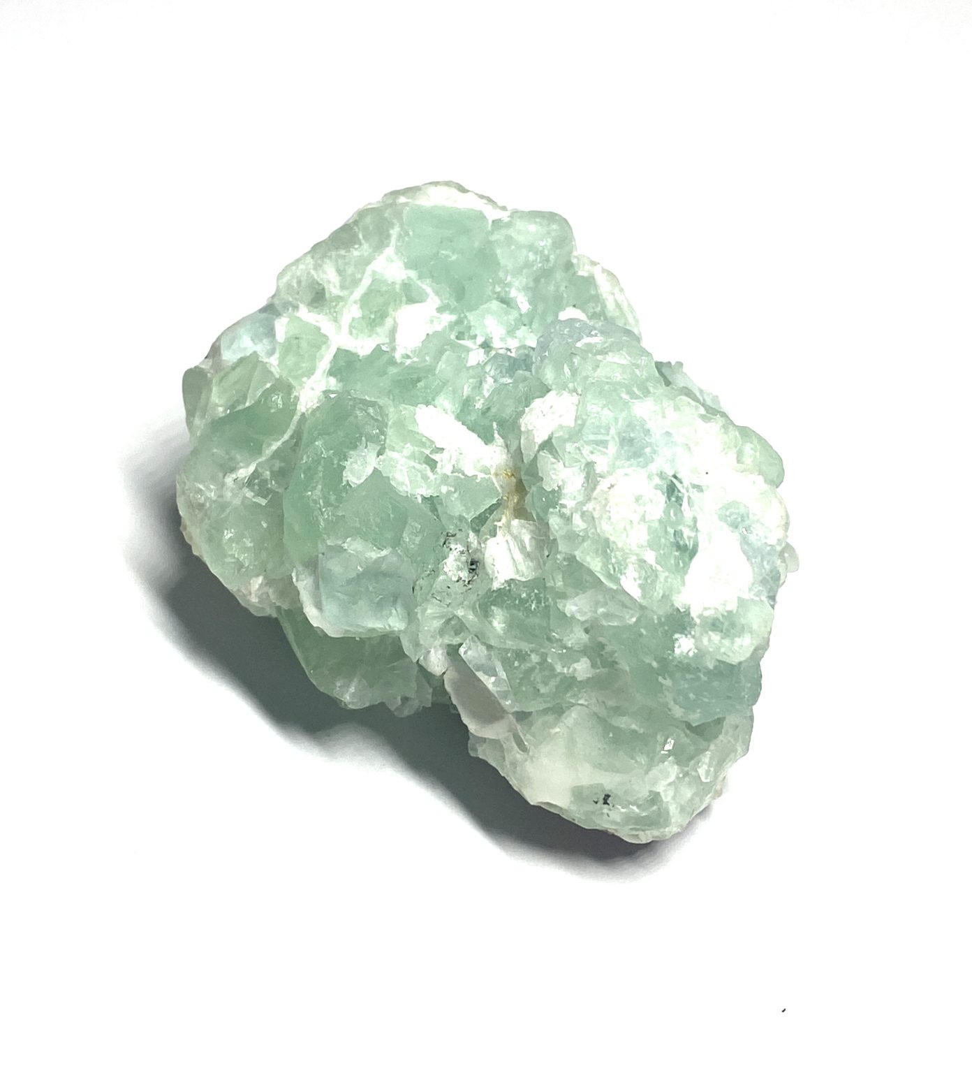 This large raw green fluorite crystal is a one-of-a-kind piece, showcasing delicate, light green hues throughout its natural, unpolished surface. The subtle colour and organic textures make this crystal unique, giving it a soft, elegant presence in any space. Its irregular, natural shape draws attention and adds charm, making it an ideal display piece for shelves, desks, or collections. Perfect for collectors or anyone who appreciates the understated beauty of raw minerals. This large raw green fluorite crystal brings a gentle, natural elegance to your home or workspace.