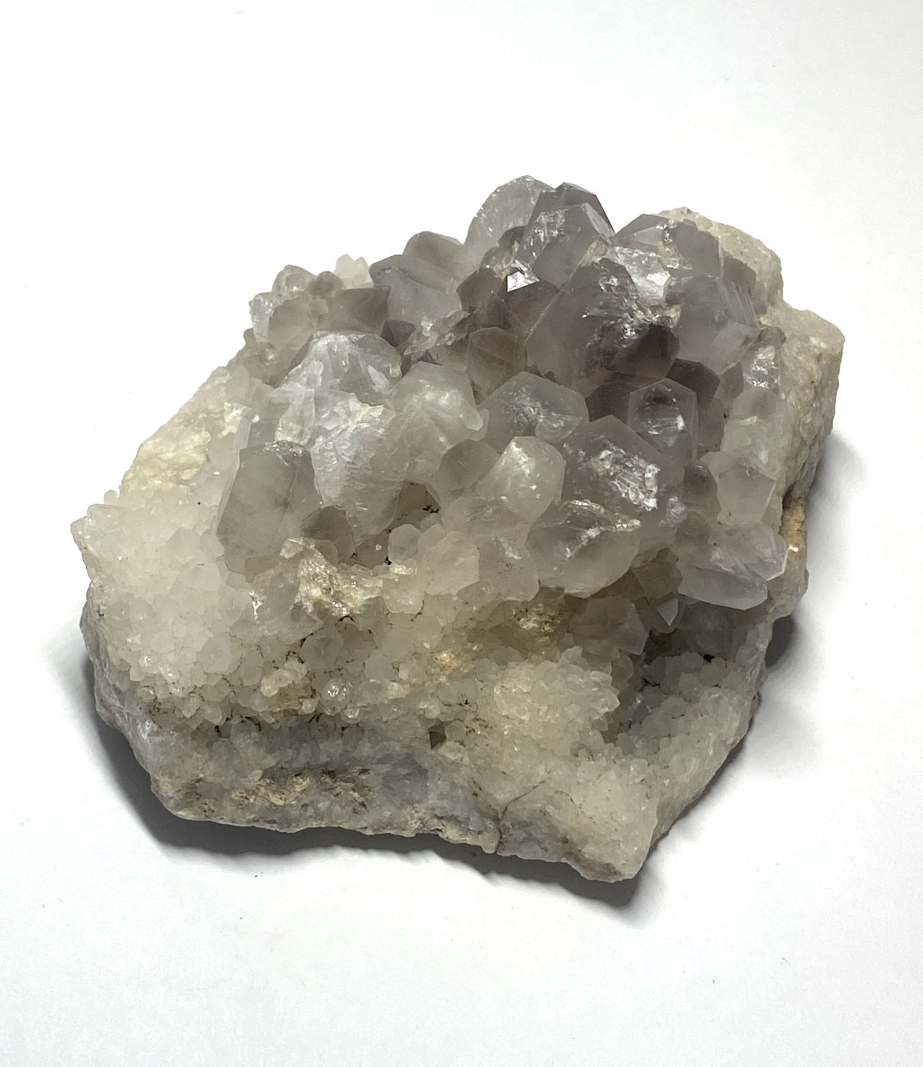 This large smoky quartz cluster is completely natural, featuring crystal points in varying sizes with rich smoky tones. It is raw and retains traces of soil, offering an authentic, straight-from-the-earth appearance. The cluster showcases well-formed terminations and natural variations in colour and clarity, ranging from translucent to deep smoky tones. Perfect for collectors, displays, or photography props, this piece captures the raw beauty of untouched mineral formation.
