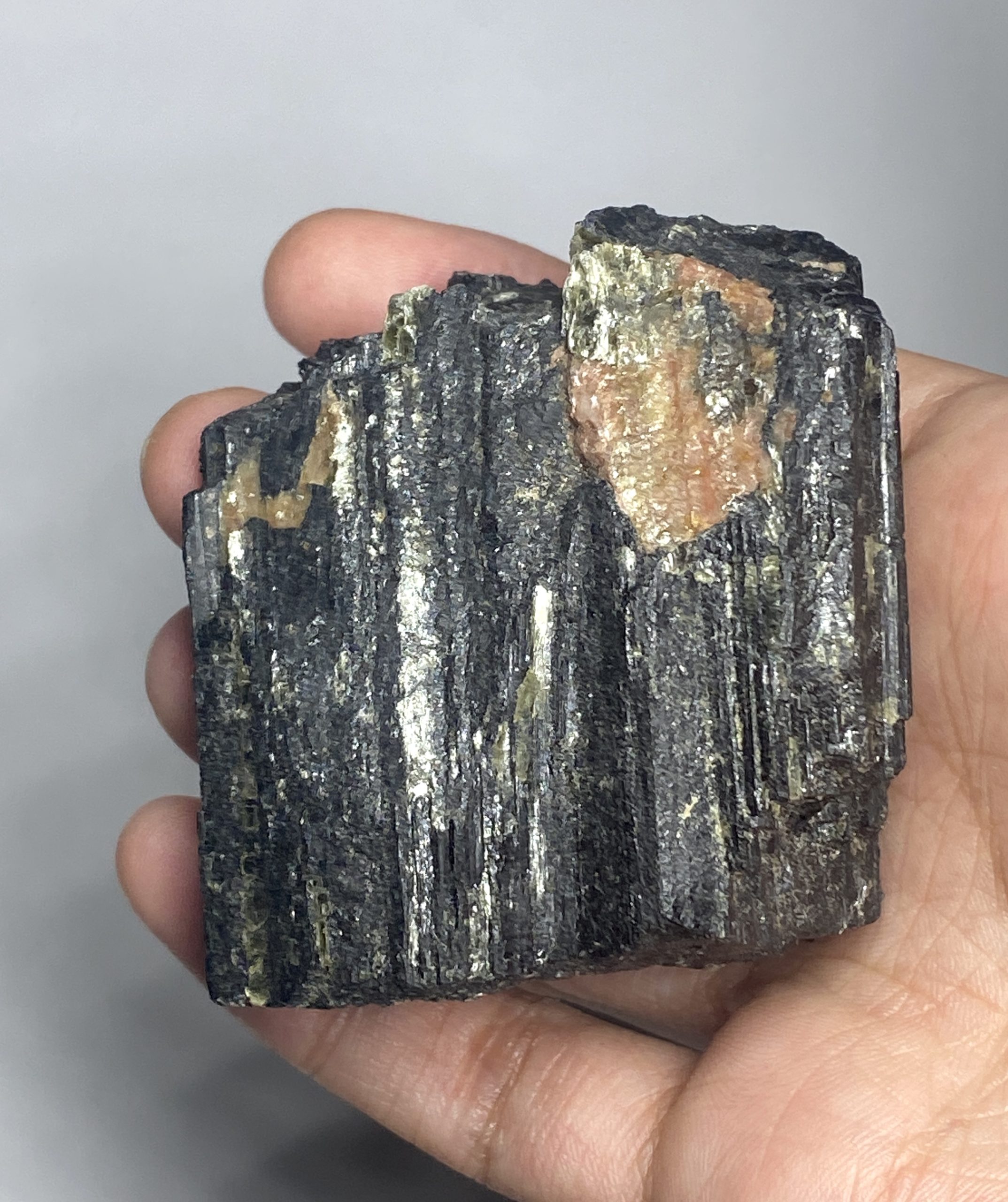 This type of multi mineral tourmaline specimen is valued for its complexity, making it a standout piece for collectors who appreciate rare formation diversity within a single crystal structure. It carries a strong visual presence while still maintaining a natural, understated elegance.