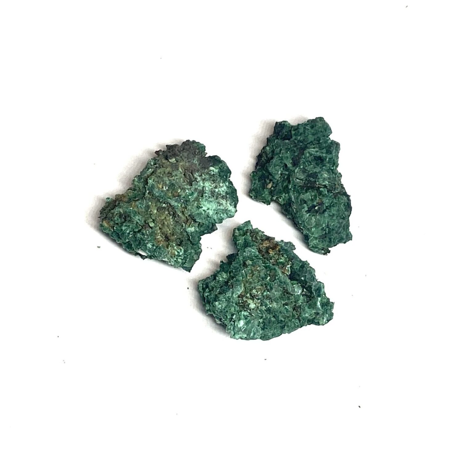 Raw Malachite clusters with vivid colour and natural banded patterns. Unpolished copper mineral showcasing authentic structure.