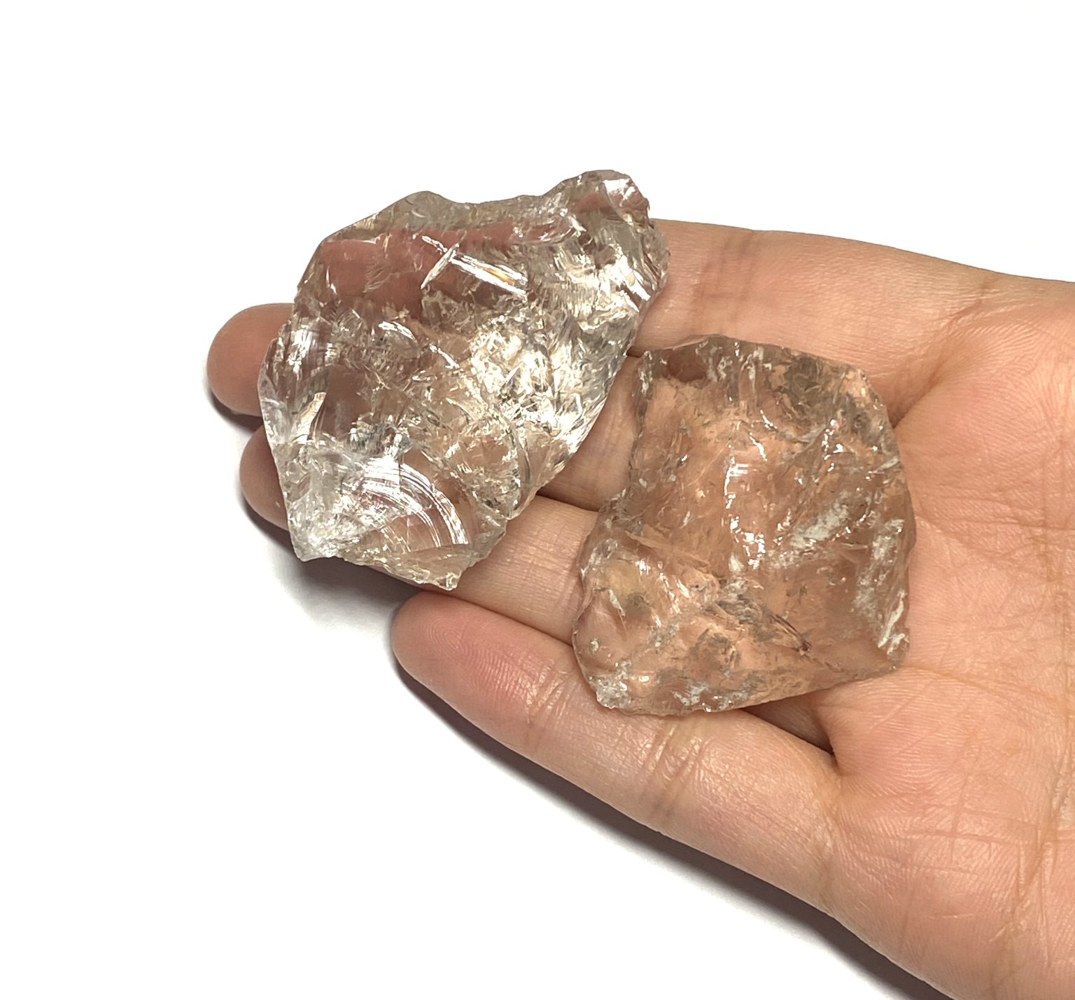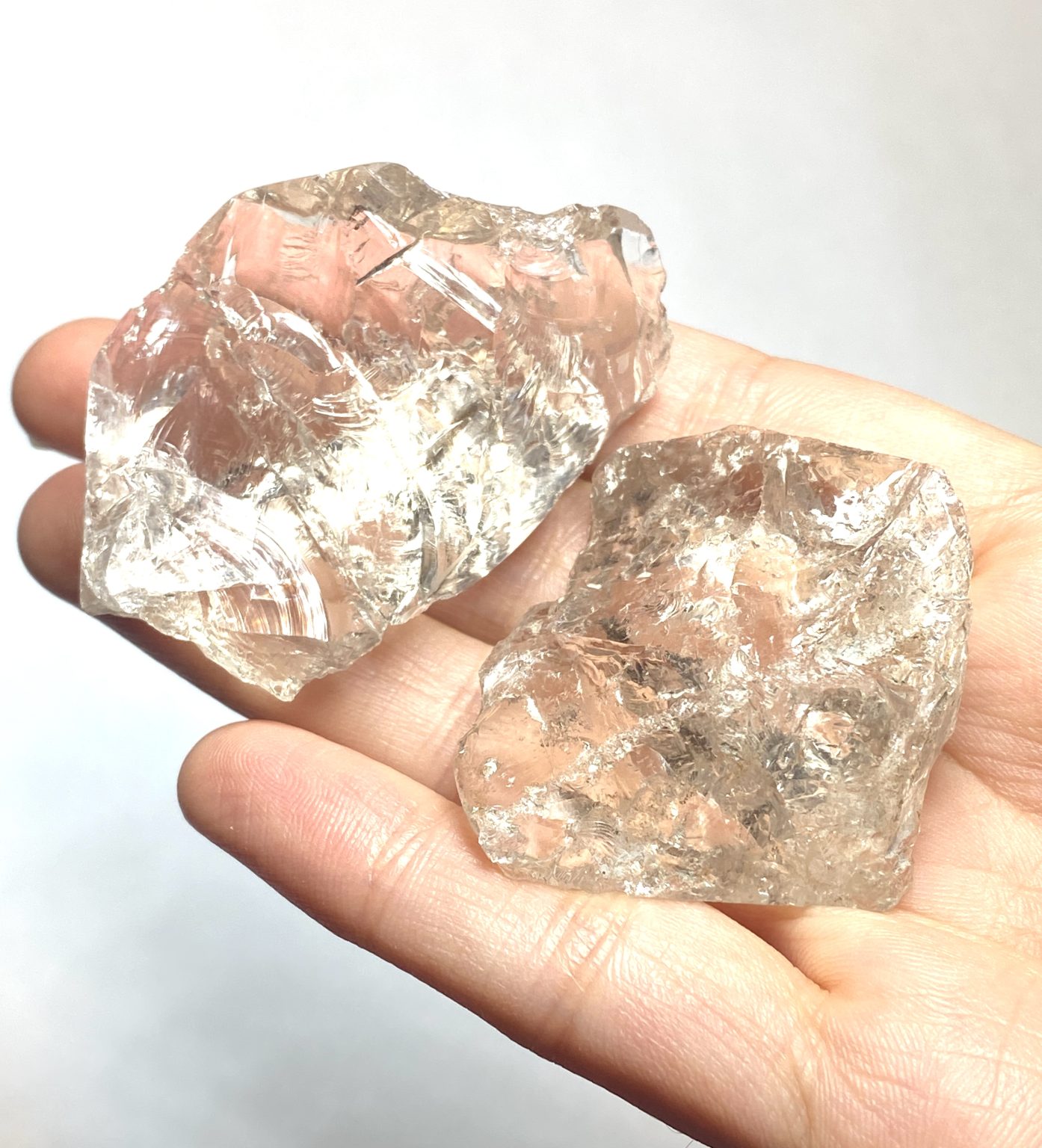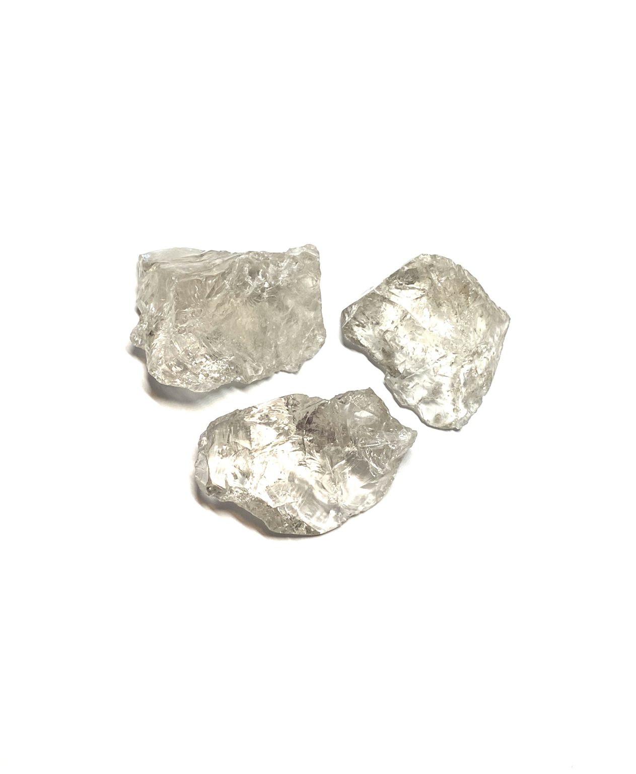Raw Smoky Quartz crystal chunks display natural shades ranging from light to dark translucent grey. These minerals form through natural irradiation acting on aluminum impurities within the quartz structure. These unpolished specimens retain their original crystal texture, fractures, and growth features, offering an authentic representation of quartz as it forms in nature. Smoky Quartz is a variety of silicon dioxide (SiO₂) and is commonly found in igneous and metamorphic environments. The raw chunk form emphasizes the mineral’s natural structure, with uneven surfaces and internal clarity variations. These variations reflect its geological history. Colour intensity can vary throughout each piece, creating depth and visual contrast within the stone.