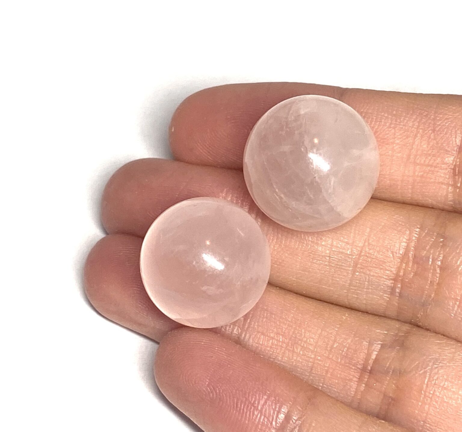 Shop Rose Quartz mini spheres with polished finish and soft pink tones. Each sphere is unique, perfect for collectors or display.